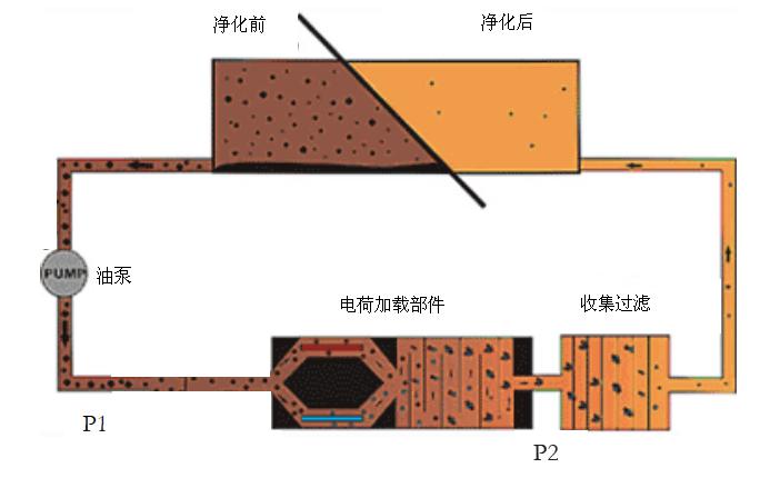 產(chǎn)品采用電荷平衡凈化技術(shù),自動、連續(xù)、動態(tài)檢測流體中的平均剩余電荷來判斷污染顆粒物的形式和分布狀況,然后對分為兩個對等的支流中的流體分別加載可控電流,所有類型的污染顆粒物帶上接近平衡的正負(fù)電荷,然后讓兩個支流進行充分混流,利用正負(fù)相吸的原理,分別攜帶正負(fù)電荷的顆粒物相互吸附,尺寸增大的同時完成大部分電荷的平衡,通過一定的循環(huán),即使是十分微小的顆粒物也“長大”到可以被常規(guī)精度的收集過濾器收集清除。尚未完成平衡的超細(xì)小顆粒(亞微米級)則通過過濾器進入流體循環(huán),進入流體系統(tǒng)動態(tài)的強制性的拔除油箱,油路,閥門,設(shè)備內(nèi)部流體通道,軸承,軸套,軸頸上的各種類型的污垢和沉積物。