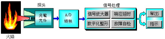 探測器的電路組成分成兩大部分:驅(qū)動電路、信號處理與控制電路。將傳感器光窗對準監(jiān)測視點,當傳感器檢測到火焰信號時,將信號傳輸給控制器進行信號處理,控制器將火焰熄滅或存在的狀態(tài)顯示出來,并控制輸出觸點進行轉(zhuǎn)換,以便對外部設(shè)備進行控制。